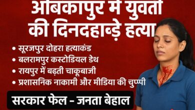 पेट्रोल पम्प में कार्यरत एक युवती की दौड़ाकर दिन-दहाड़े चाकू मारकर नृशंस हत्या सूरजपुर दोहरा हत्याकांड, बलरामपुर कस्टोडियल डेथ, रायपुर…