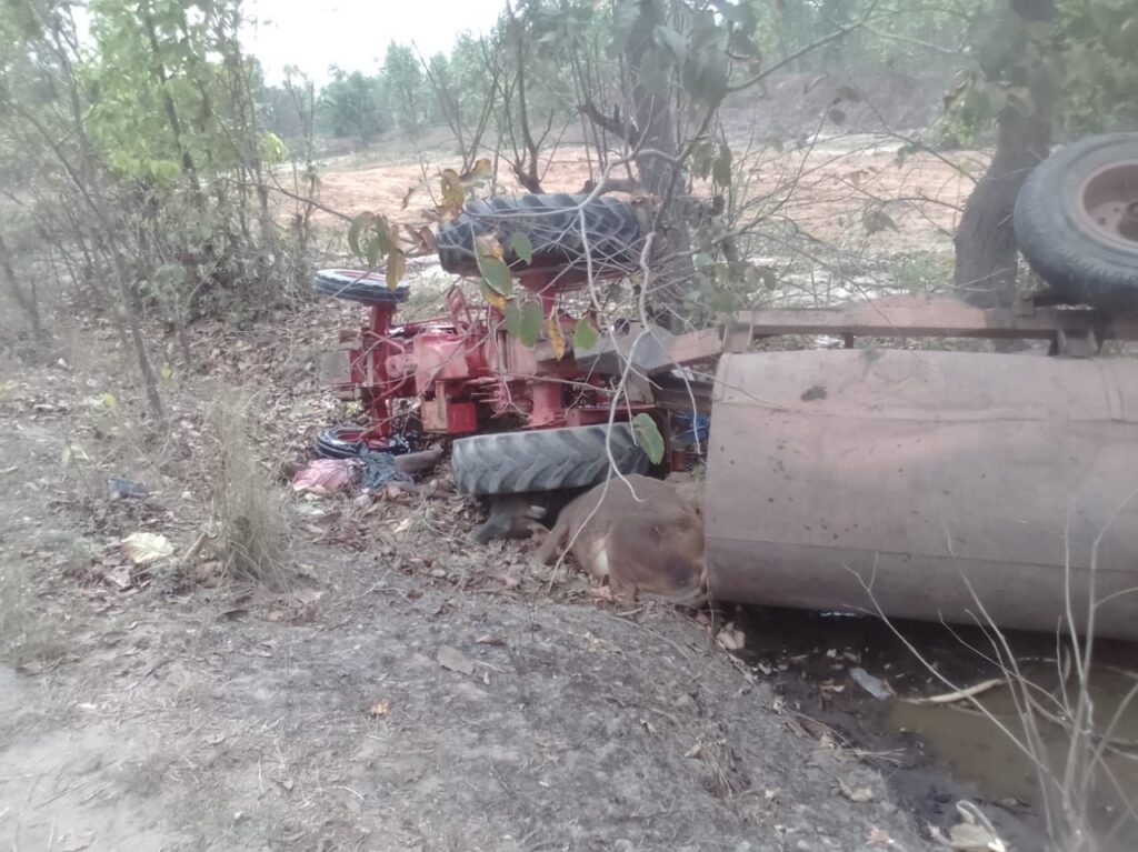 बताये अनुसार ट्रेक्टर पानी वाली टैंकर और छड़ से भरी माजदा ट्रक की भिड़ंत के बाद ट्रेक्टर और पानी टैंकर पलट गई । ट्रेक्टर के मुंडी के नीचे गाय लेकर जा रहे ब्यक्ति के साथ गाय के दबने से मौत हो गई । घटना के बाद माजदा ट्रक का ड्राइवर मौके से फरार हो गया है । घरघोड़ा थाना प्रभारी अमित तिवारी ने घायलों को मृतक के शव को घरघोड़ा हॉस्पिटल भेज दिया है । पुलिस ने मृतक का शव पंचनामा भरकर मर्ग कायम कर जांच में जुट गई है । वही ट्रक ड्राइवर की पता तलाश में जुट गई हैं