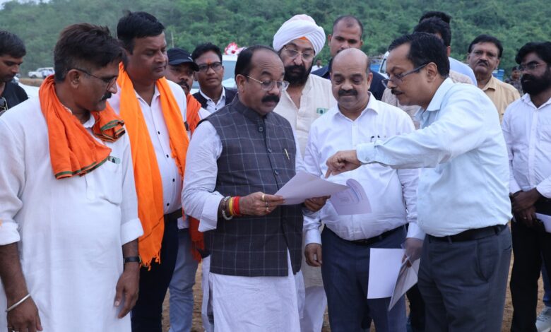 उप मुख्यमंत्री श्री अरूण साव निर्माण कार्यों की प्रगति देखने स्थल निरीक्षण में पहुंचे