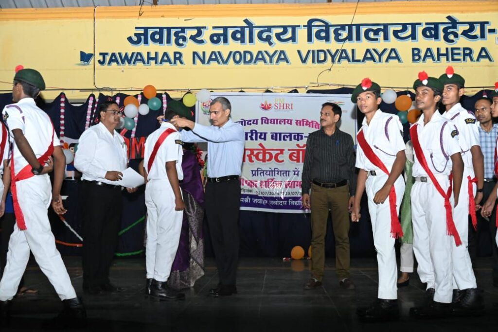 बेमेतरा पीएम श्री जवाहर नवोदय विद्यालय बहेरा, बेमेतरा में दो दिवसीय संकुल स्तरीय बास्केटबॉल प्रतियोगिता का आयोजन 22 से 23 जुलाई तक किया गया। विद्यालय प्रांगण में सायंकालीन सांस्कृतिक कार्यक्रम का आयोजन किया गया, जिसमें मुख्य अतिथि के रूप में ज़िले के जिलाधीश श्री रणबीर शर्मा उपस्थित थे | इस अवसर पर एडीएम श्री अनिल वाजपेयी, संयुक्त कलेक्टर अंकिता गर्ग , ज़िला शिक्षाधिकारी श्री के के बंजारे, एसडीएम घनश्याम सिंह उपस्थित थे । माँ सरस्वती के समक्ष दीपप्रज्ज्वलन कर कार्यक्रम की शुरुआत की गई तत्पश्चात् विद्यालय प्राचार्या श्रीमती लक्ष्मी सिंह के द्वारा कलेक्टर तथा अन्य प्रशासनिक अधिकारियों का पुष्पगुच्छ प्रदान कर स्वागत व अभिनंदन किया गया। अपने स्वागत उद्बोधन में विद्यालय प्राचार्या ने कलेक्टर श्री शर्मा को 17 जनपदों से आये हुए विभिन्न प्रतिभागियों के बारे में अवगत कराया ।