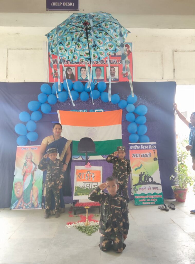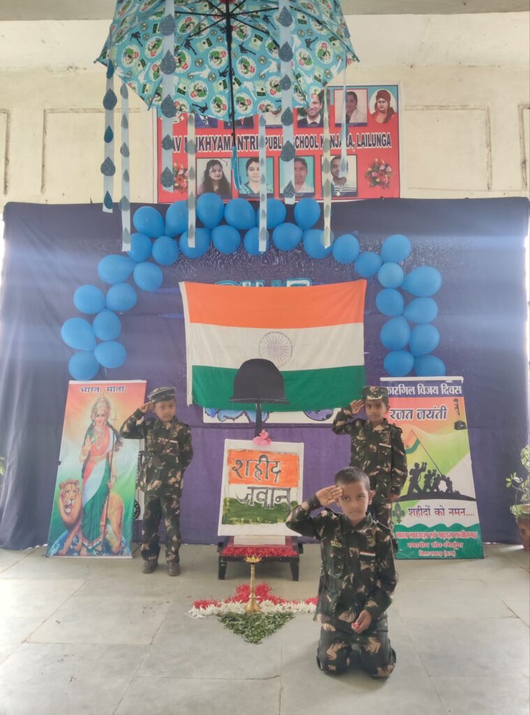 यह दिन हमारे देश के वीर सैनिकों के अदम्य साहस, मातृभूमि के प्रति उनके प्रेम और बलिदान को याद करने का दिन है। इस अवसर पर, हमारे डी ए वी मुख्यमंत्री पब्लिक स्कूल कुंजारा लैलूंगा में श्रद्धांजलि और सम्मान समारोह आयोजित किया गया। इस कार्यक्रम की शुरुआत मां सरस्वती, भारत माता की छायाचित्र में पुष्प हार एवं दीप प्रज्वलित कर की गई। तत्पश्चात भारत स्काउट गाइड के जिला सचिव विकास तिवारी संगठन आयुक्त जितेन डनसेना विकास खंड सचिव कान्हू राम गुप्ता के मार्गदर्शन में बच्चों द्वारा मार्च पार्श कर सलामी दी गई तत्पश्चात श्रद्धानंद हाउस के बच्चों के द्वारा ग्रुप सॉन्ग गया गया जिससे सारा वातावरण देशभक्ति की भावना से भर गया, कार्यक्रम की अगली कड़ी में देशभक्ति डांस प्रस्तुत किया, पोस्चर मेकिंग कॉम्पिटीशन भी कराई गई जिसमें बच्चों ने अपने क्रिएटिविटी दिखाते हुए देश के लिए शाहिद होने वाले जवानों को श्रद्धांजलि दी।