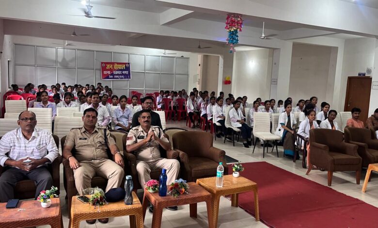 *14 अगस्त रायगढ़* । पुलिस अधीक्षक श्री दिव्यांग कुमार पटेल के दिशा निर्देशन में आज थाना चक्रधरनगर के निरीक्षक प्रशांत राव आहेर व उनके स्टाफ द्वारा कैरियर कॉलेज ऑफ नर्सिंग, चिटकाकानी में एंटी रैगिंग डे के अवसर पर विशेष जागरूकता कार्यक्रम आयोजित किया गया।
