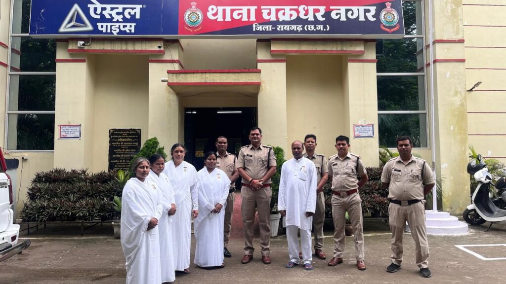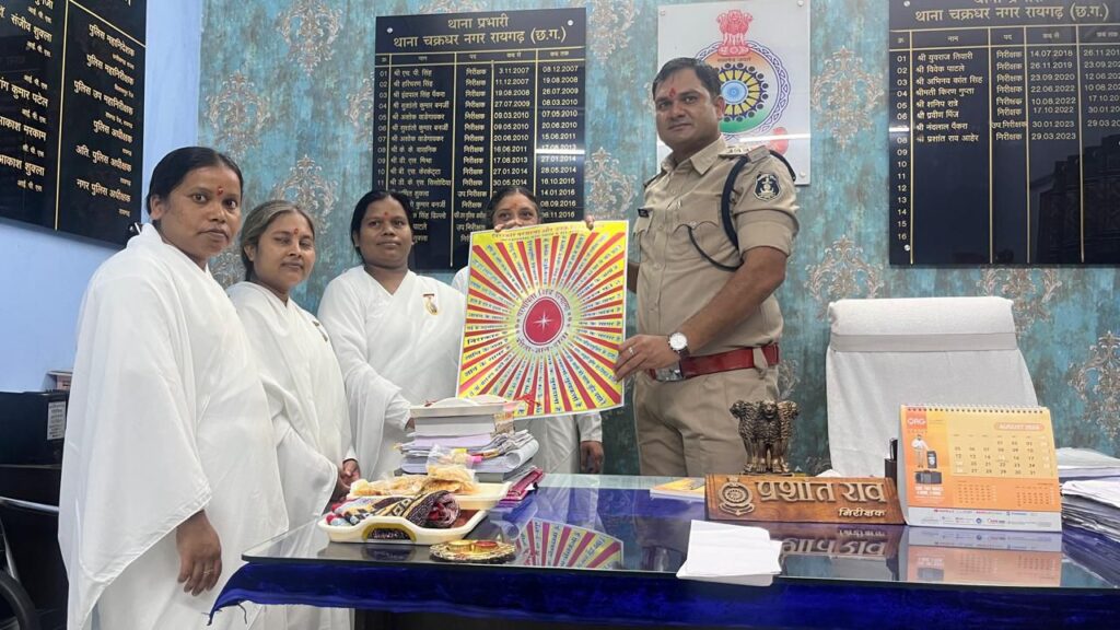 रक्षाबंधन के पावन अवसर पर प्रजापिता ब्रह्माकुमारी ईश्वरीय विश्वविद्यालय की बहनों ने थाना चक्रधरनगर के प्रभारी निरीक्षक प्रशांत राव आहेर और उनके स्टाफ को राखी बांधकर त्यौहार मनाया। पुलिस चौकी खरसिया में भी ब्रह्मकुमारी बहनों ने पुलिसकर्मियों को राखी बांधी ।