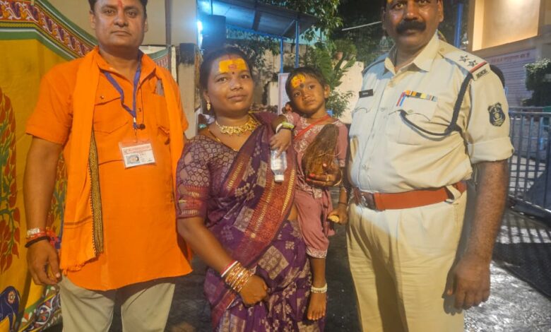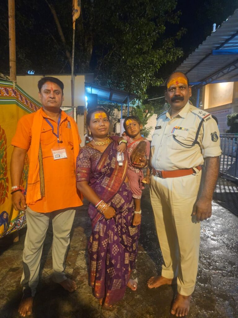 मंदिर आयी तीन वर्षीय बच्ची अपने परिजनों से बिछड़ी, पुलिस ने तुरंत ढूंढकर सकुशल लौटाया