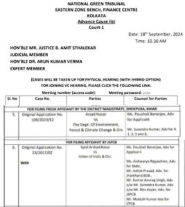 साहिबगंज।चर्चित सामाजिक कार्यकर्ता सह पर्यावरण प्रेमी सैयद अरशद नसर द्वारा एतिहासिक राजमहल पहाड़ को बचाने व अवैध रूप से संचालित सभी स्टोन क्रशर व माईंस बंद करने व अवैध रूप से वनों को काटने को लेकर एनजीटी इस्टर्न जोन कोलकाता में दायर याचिका संख्या क्रमशःओए 108/23 व ओए 23/17 की सुनवाई बुधवार को जुडिशियल मेंबर जस्टिस बी.अमित स्टालेकर व एक्स्पर्ट मेंबर डा.अरूण कुमार की पीठ दिन के 10:30 बजे से करेगी.सुनवाई पुर्व झारखंड राज्य प्रदुषण बोर्ड को फ्रेश शपथपत्र दाखिल कर बताना है कि अब तक किन किन पत्थर माफियाओं के ख़िलाफ़ कितना कितन पर्यावरणीय क्षतिपूर्ति जुर्माना लगाया गया और किन किन लोगों ने कितना कितन जुर्माना राशि जमा कराया साथ ही ये भी बताना है कि अब तक पत्थर माफियाओं के ख़िलाफ़ क्या क्या कार्रवाई हुई है.ईडी द्वारा दाखिल हलफनामे पर भी बहस होने की संभावना है.लकड़ी माफियाओं के ख़िलाफ़ दर्ज मामले में जिलाधिकारी को शपथपत्र दाखिल कर एनजीटी को बताना है कि कुल कितने पेड़ कौन कौन से प्रजाति के किसके अनुमति से काटे गए.सुनवाई में भाग लेने के लिए याचिकाकर्ता अरशद नसर कोलकाता पहुँच गए हैं.बुधवार को होने वाली सुनवाई पर पत्थर व लकड़ी माफियाओं समेत पुलिस प्रशासनिक पदाधिकारियों की नजरें टिक गईं है.