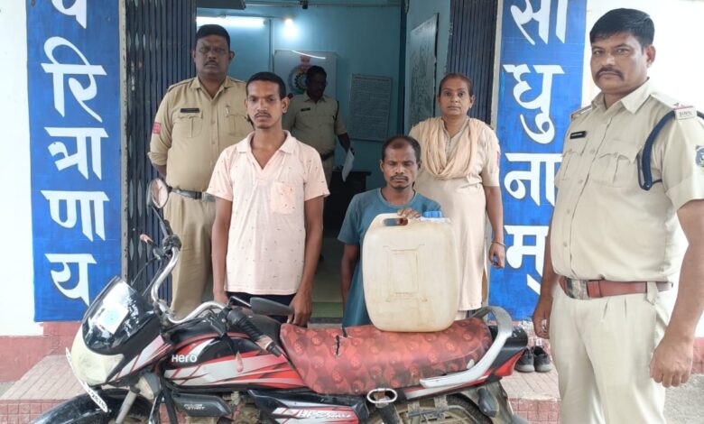 मोटर सायकल से महुआ शराब की तस्करी करते दो आरोपी गिरफ्तार, आरोपियों से 20 लीटर महुआ शराब और मोटरसाइकिल जप्त…