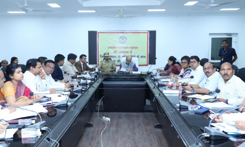 *राज्यपाल श्री डेका ने रायगढ़ में विकास एवं अन्य गतिविधियों पर अधिकारियों की ली बैठक*