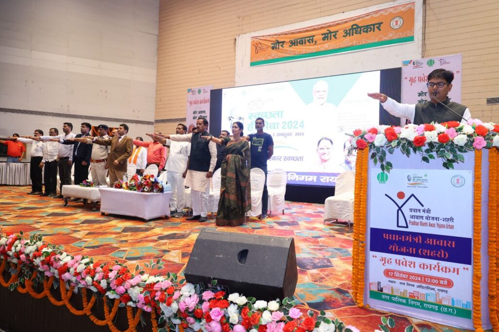 वित्त मंत्री श्री ओ.पी.चौधरी ने कार्यक्रम को संबोधित करते हुए कहा कि आज महत्वपूर्ण और खुशी का दिन है कि हमारे देश के प्रधानमंत्री श्री नरेंद्र मोदी के जन्मदिन के अवसर पर यहां आपको गृह प्रवेश करवाने का अवसर मिला। मुख्यमंत्री श्री विष्णुदेव साय के नेतृत्व में राज्य के सतत विकास के लिए शासन निरंतर कार्य कर रही है। शासन आर्थिक रूप से कमजोर वर्ग के लिए पीएम आवास के कार्यों को प्राथमिकता से कर रही है। जिससे बड़ी संख्या में लोगों का पक्के आवास का सपना साकार हो रहा है। उन्होंने शहरी क्षेत्रों के गृह प्रवेश कर रहे हितग्राहियों को बधाई देते हुए कहा कि हमारी सरकार के लिए आज संतुष्टि का दिन है।