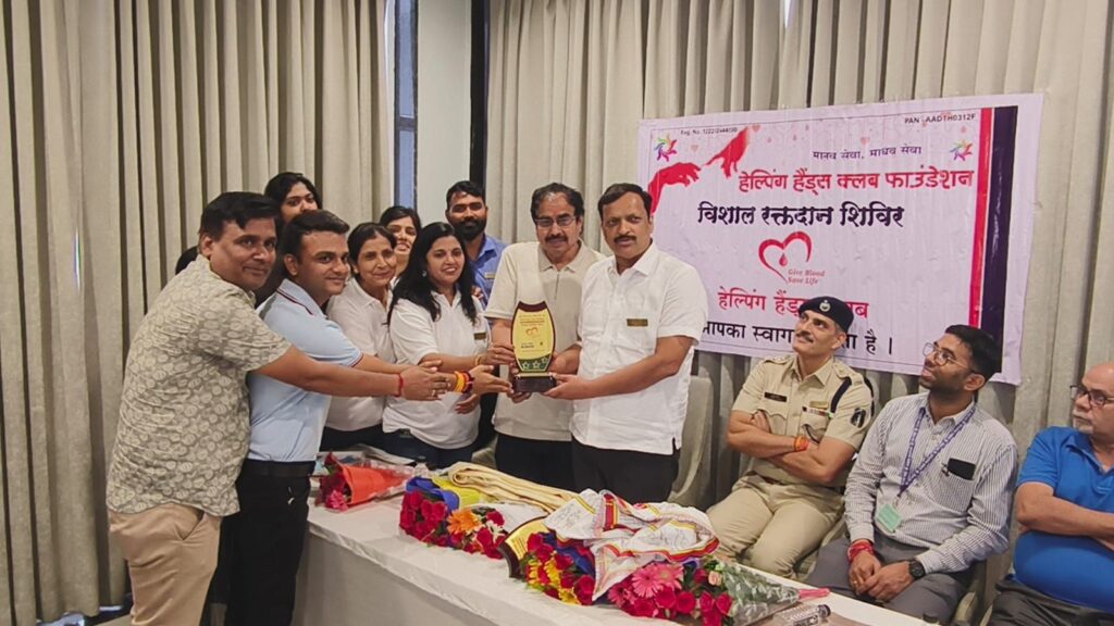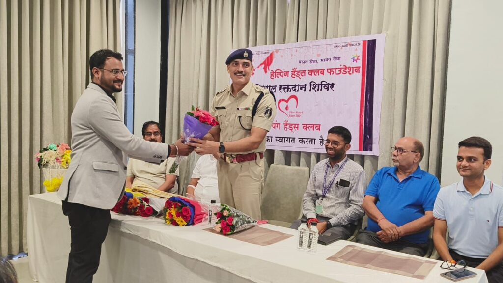 रायपुर।सामाजिक कार्य और सेवा प्रदान करने में पूरे प्रदेश में अग्रणी रहने वाली एवं अपने कार्यों से पूरे देश में अपनी अलग पहचान बनाने वाली संस्था हेल्पिंग हैंड्स क्लब फाउंडेशन इस माह प्रतिदिन रक्तदान शिविर कर रही है। इस महीने हर दिन 2 से 3 कैम्प किया जा रहा है। जिसमे रक्त संग्रहित एम्स हॉस्पिटल एवं मेकाहारा द्वारा किया जा रहा है। इसी कड़ी में रायगढ़ अंचल के द ट्री मेन एवं छत्तीसगढ़ के प्रस्तितिष्ठ समाजसेवी उद्योगपति सुनील रामदास अग्रवाल ने आयोजित मेगा ब्लड कैंप में हेल्पिंग हैंड्स क्लब फाउंडेशन में प्रमुख सलाहकार के रूप में पद ग्रहण कर शपथ लिया। जिसमे मुख्य अतिथि यातायात DSP गुरजीत सिंह रहे संस्था के संरक्षक रमेश अग्रवाल सचिव उदित अग्रवाल महिला विंग अध्यक्ष बबिता अग्रवाल उपाध्यक्ष सुनीता पांडे, सह कोषाध्यक्ष विवेक श्रीवास्तव सहित अन्य मेंबर की गरिमामयी उपस्थिति रही ।
