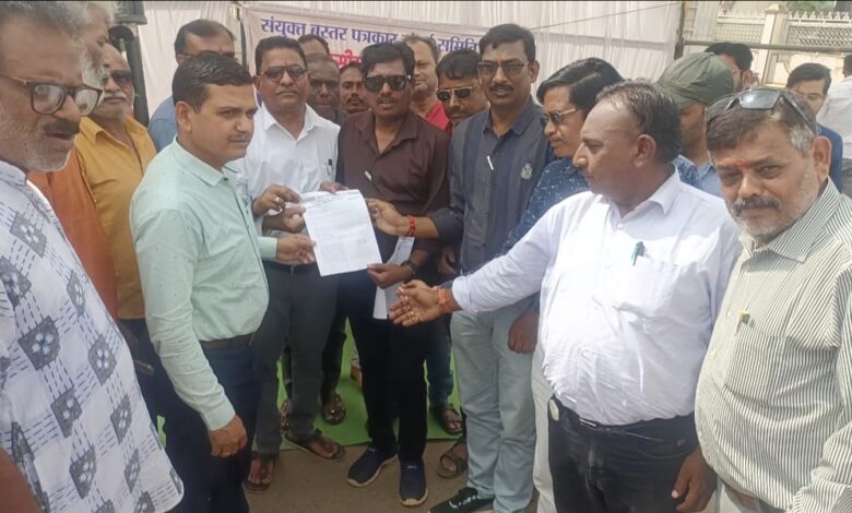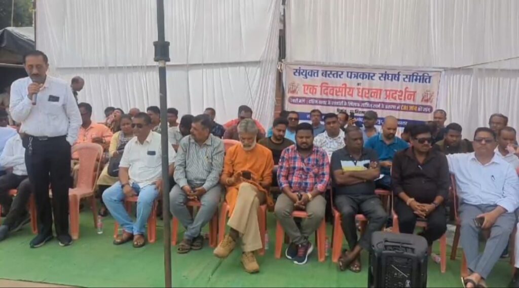 बस्तर के चार पत्रकारों पर फर्जी गांजा प्रकरण मामले में सीबीआई जांच की मांग को लेकर पत्रकारों ने दिया धरना