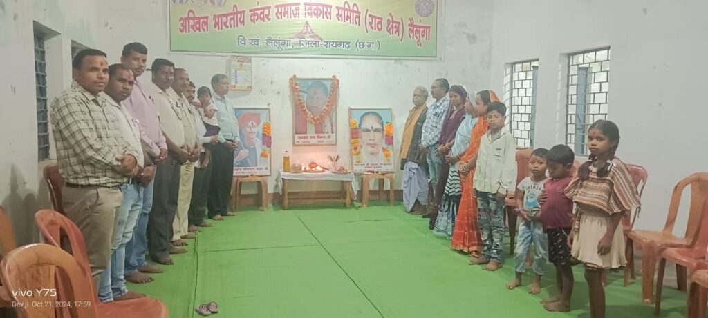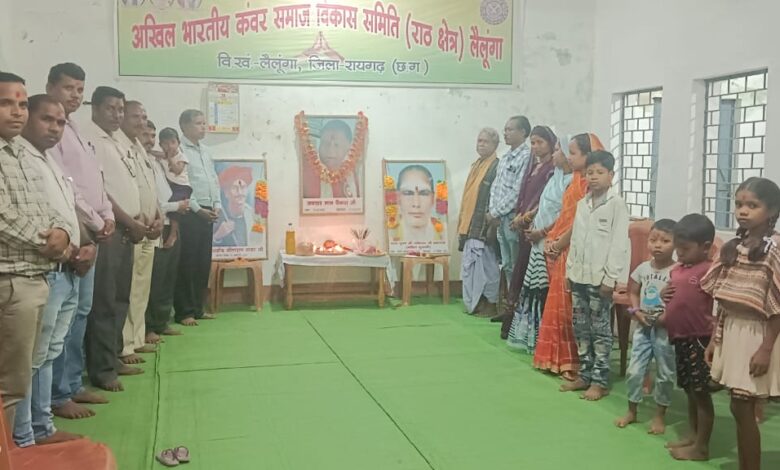 समाज के लिए समर्पित ऐसे महान व्यक्ति को कंवर समाज लैलूंगा द्वारा शत शत नमन करते हुए श्रद्धांजलि अर्पित की गयी। इस अवसर पर सर्व श्री ललित कुमार पैंकरा, श्री नंदकुमार साय पैंकरा, श्री जयराम पैंकरा, श्री जयमंगल सिंह पैंकरा, श्री पोलेश्वर पैंकरा, श्री बालमुकुंद साय पैंकरा, श्री विरेंद्र कुमार पैंकरा, श्री जगरसाय पैंकरा, श्री देवचरण पैंकरा, श्रीमती भोजकुमारी पैंकरा, श्रीमती गणेशी पैंकरा, श्रीमती निमेश पैंकरा, आर्यन पैंकरा, लोकित पैंकरा आदि समाजिक सदस्यों ने उपस्थित होकर उनके श्री चरणों में श्रद्धा सुमन अर्पित किए l
