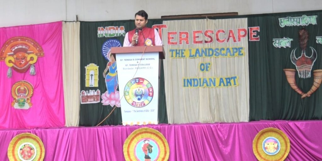 रायगढ़, 19 नवम्बर 2024/ कलेक्टर श्री कार्तिकेया गोयल के मुख्य आतिथ्य में सेंट टेरेसा स्कूल परिसर, रायगढ़ में विद्यार्थियों द्वारा मनमोहक कला प्रदर्शनी टेरेस्केप (भारतीय कला के परिदृश्य) का आयोजन किया गया। कलेक्टर श्री गोयल ने दीप प्रज्ज्वलन कर सांस्कृतिक कार्यक्रम का शुभारंभ किया।
