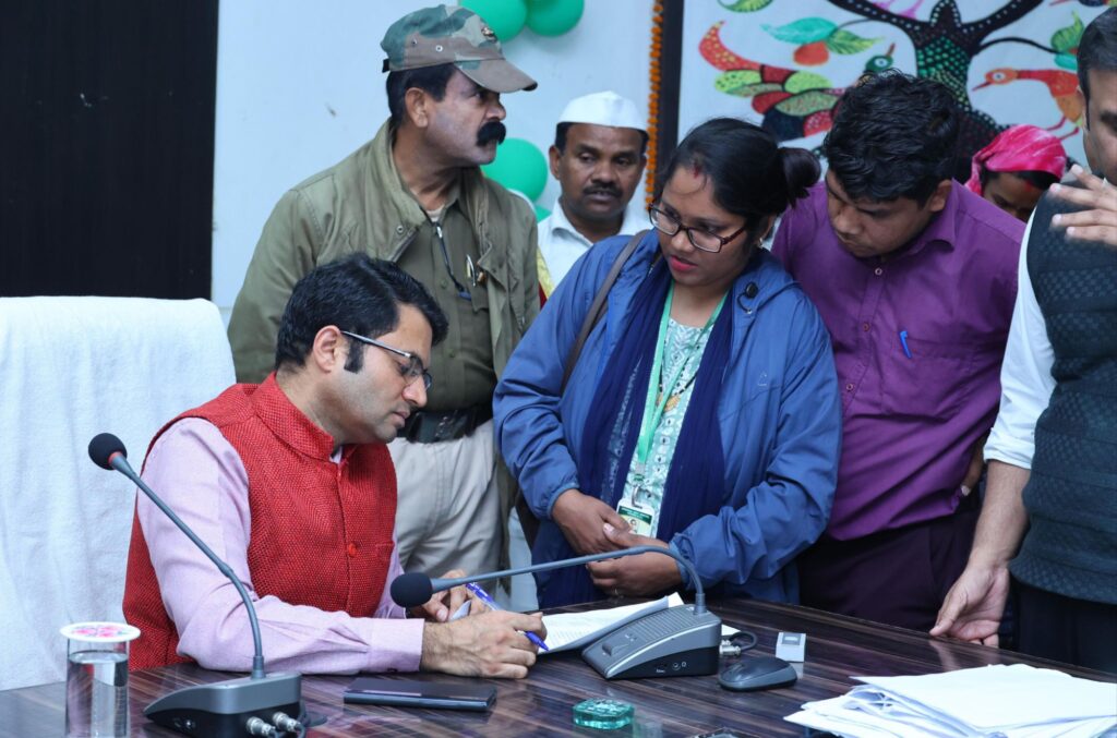 रायगढ़, 10 दिसम्बर 2024/ कलेक्टर श्री कार्तिकेया गोयल ने आज साप्ताहिक जनदर्शन में जिले के दूर-दराज से आए लोगों की समस्याएं सुनी। उन्होंने सभी की समस्याओं को सुनते हुए निराकरण योग्य आवेदनों का मौके पर ही निराकरण किया। कलेक्टर श्री गोयल ने संबंधित अधिकारियों को जनदर्शन में प्राप्त सभी आवेदनों को जल्द निराकरण करने के निर्देश दिए। इस दौरान प्रभारी अपर कलेक्टर श्रीमती ऋशा ठाकुर, डिप्टी कलेक्टर श्री महेश शर्मा सहित जिला स्तरीय अधिकारी उपस्थित रहे।
