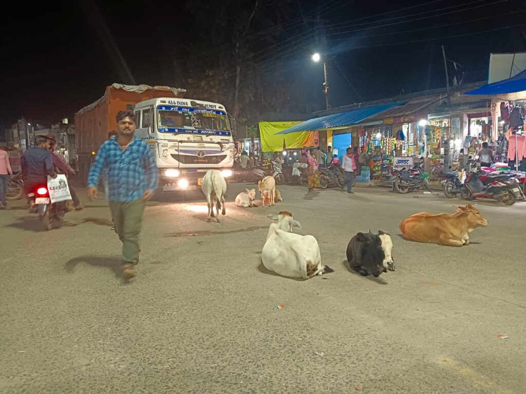 लैलूंगा – नगर के प्रमुख चौक-चौराहों पर दिन-रात गाय और बैलों का स्थायी डेरा अब लोगों के लिए मुसीबत बन गया है। लगातार सड़कों पर खड़े पशु न केवल आवाजाही में बाधा डाल रहे हैं, बल्कि आए दिन जाम की स्थिति उत्पन्न हो रही है। राहगीरों, स्कूली बच्चों और आपातकालीन वाहनों को भारी परेशानी का सामना करना पड़ रहा है।