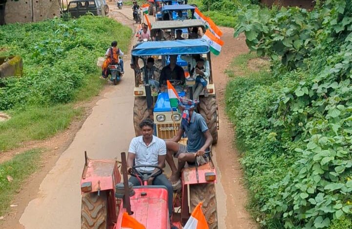 लैलूँगा विकासखंड के युवा किसानों ने बड़े ही अनोखे अंदाज से ट्रैक्टर में निकाला तिरंगा यात्रा