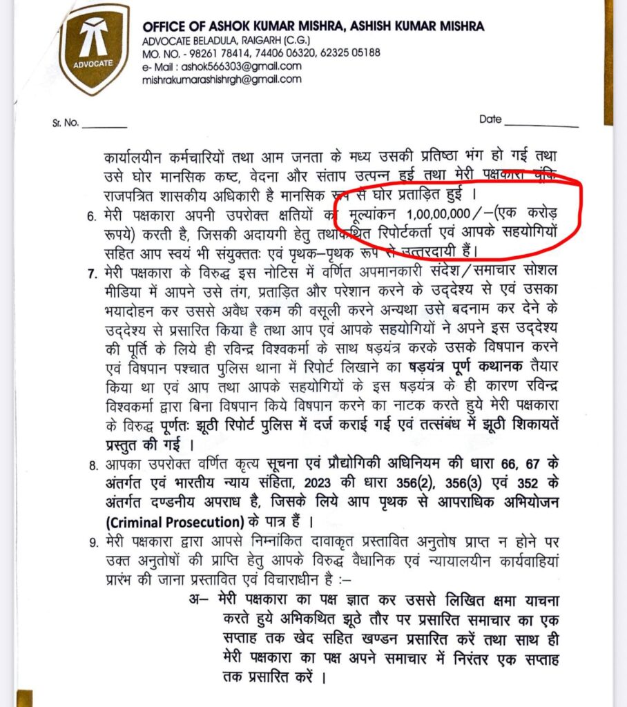बड़ी खबर: जशपुर में जनसंपर्क विभाग के अधिकारी का पत्रकारों को नोटिस, एक-एक करोड़ हर्जाने की धमकी