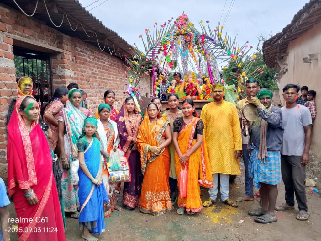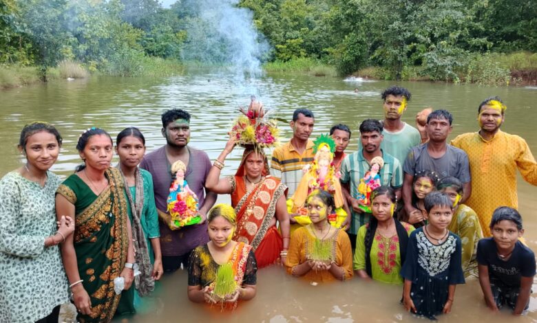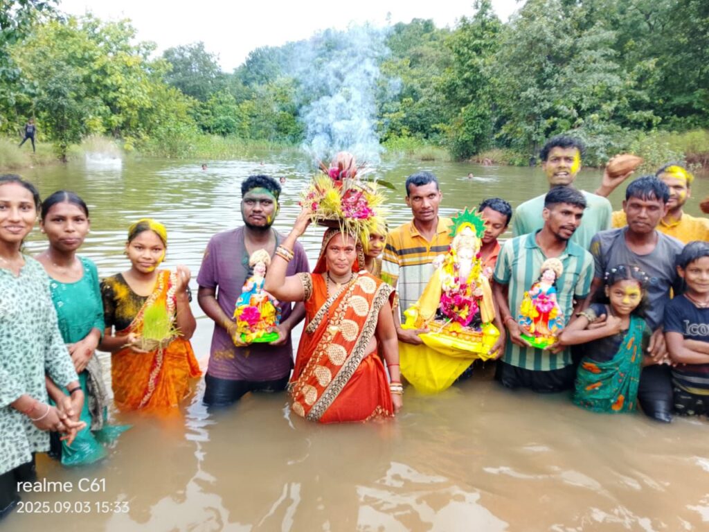 लैलूंगा के अंगेकेला गांव में धूमधाम से गणेश विसर्जन, सेवा भारती स्कूल के बच्चे और शिक्षक भी बने सहभागी।