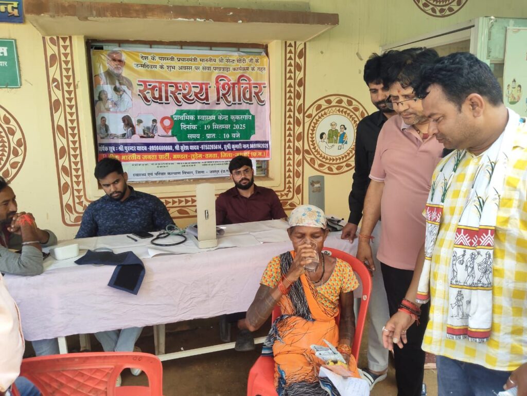 देश के यशस्वी प्रधानमंत्री माननीय नरेंद्र मोदी जी के जन्मदिवस को संगठन के निर्देशानुसार पूरे प्रदेश में सेवा पखवाड़ा के रूप में मनाया जा रहा है। इसी कड़ी में आज लुड़ेग तमता मंडल के प्राथमिक स्वास्थ्य केंद्र कुकरगांव में स्वास्थ्य शिविर के प्रथम चरण का आयोजन किया गया, जिसमें बड़ी संख्या में ग्रामीणजन एवं कार्यकर्ता उपस्थित रहे।